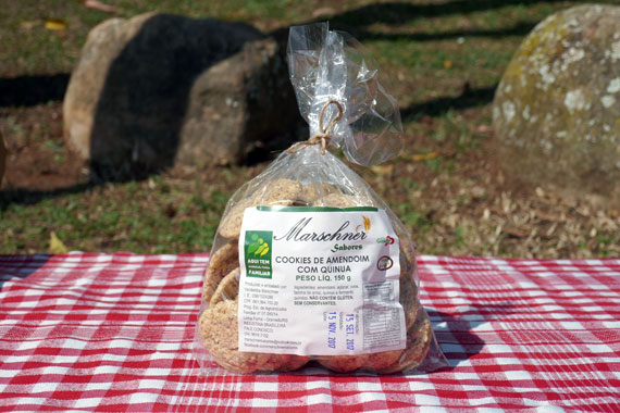 Descrição: A pequena fábrica de biscoitos está instalada no quintal de casa da família de Vanderléia, em uma região montanhosa de Gramado. A proximidade com a natureza inspirou sua linha de produtos saudáveis, como este cookie de amendoim, que não leva farinha de trigo e não contém glúten.
