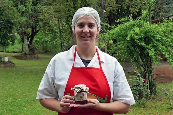 Descrição: Em uma linda área rural de Gramado, Adriana cuida das frutas desidratadas enquanto a família toma conta da antiga Ervateira Marcon, ao lado da agroindústria. São mais de 15 tipos de frutas que passam por uma secagem natural, concentrando seu sabor. Escolhemos a de figo, colhido da própria chácara, que se transforma numa passa consistente e muito saborosa.